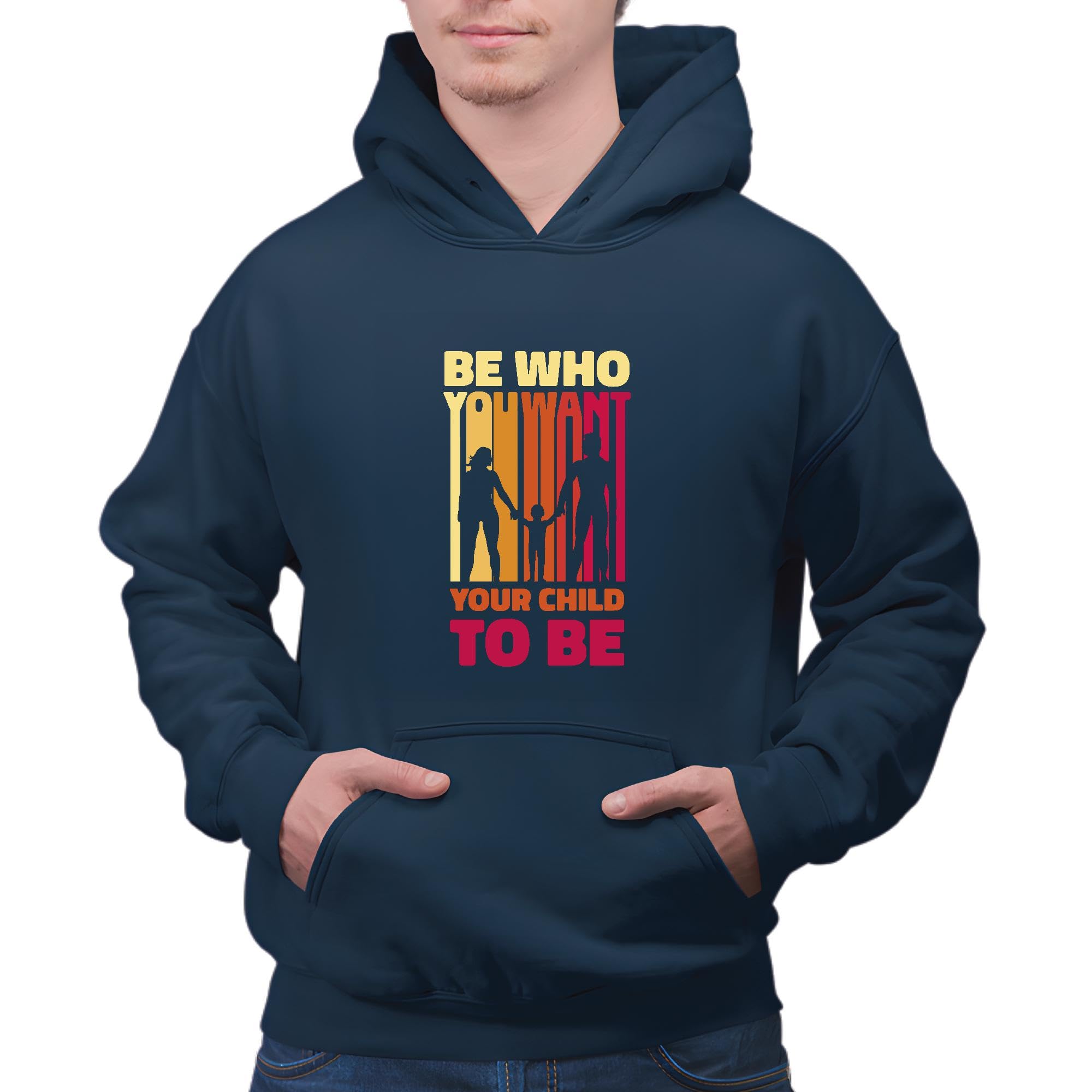 Motivational Gift Quote Be Who You Want Your Child to Be Perfect Present for Families Navy and Muticolor Unisex Hoodie