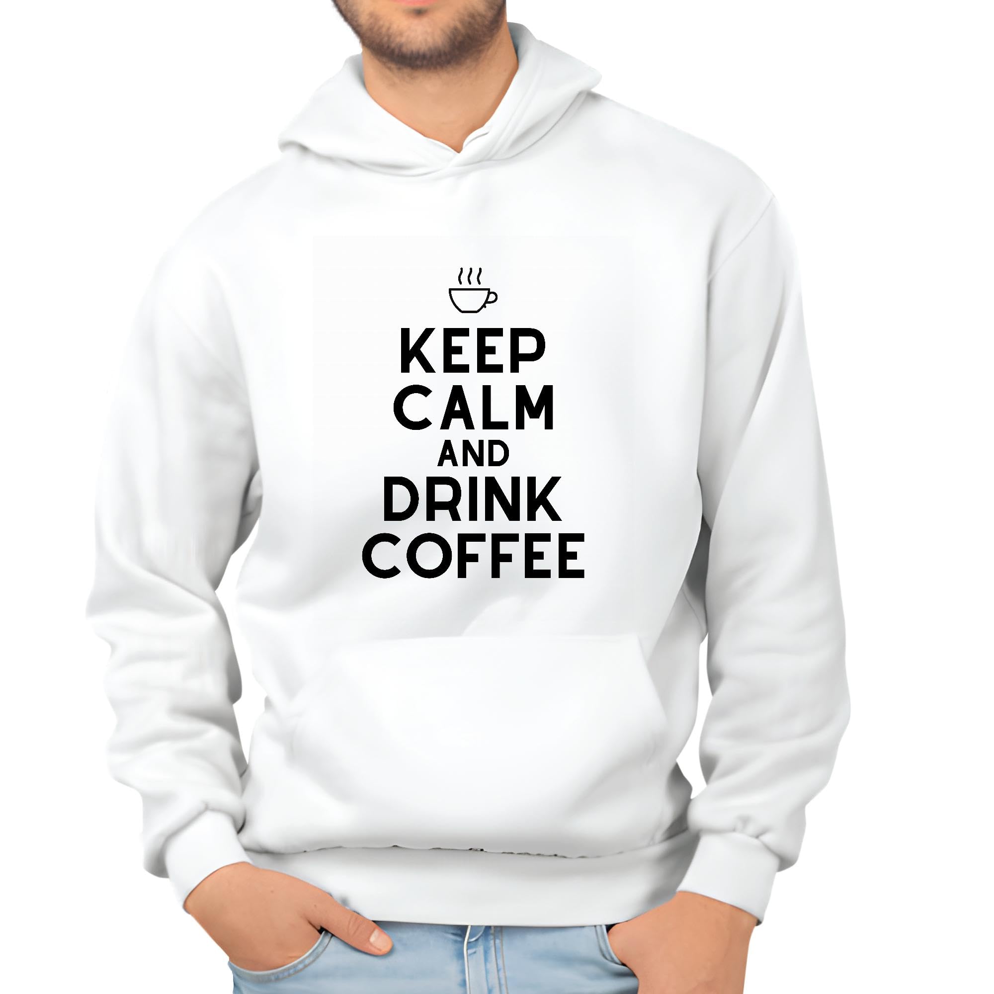 Motivational Inspirational Keep Calm and Drink Coffee for Coffee Lovers White and Muticolor Unisex Hoodie