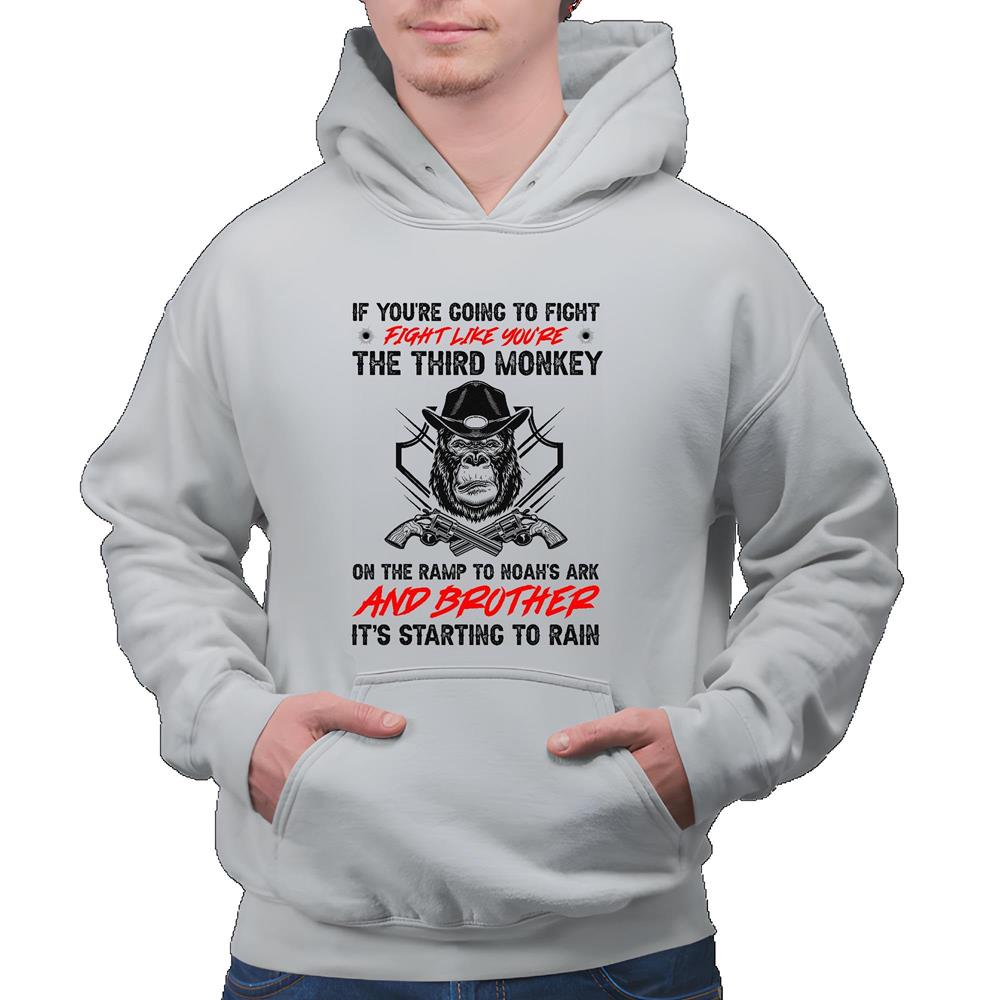 Motivational Positive Thinking Gift with Gun for Third Monkey on Noah Ark Gray and Muticolor Unisex Hoodie
