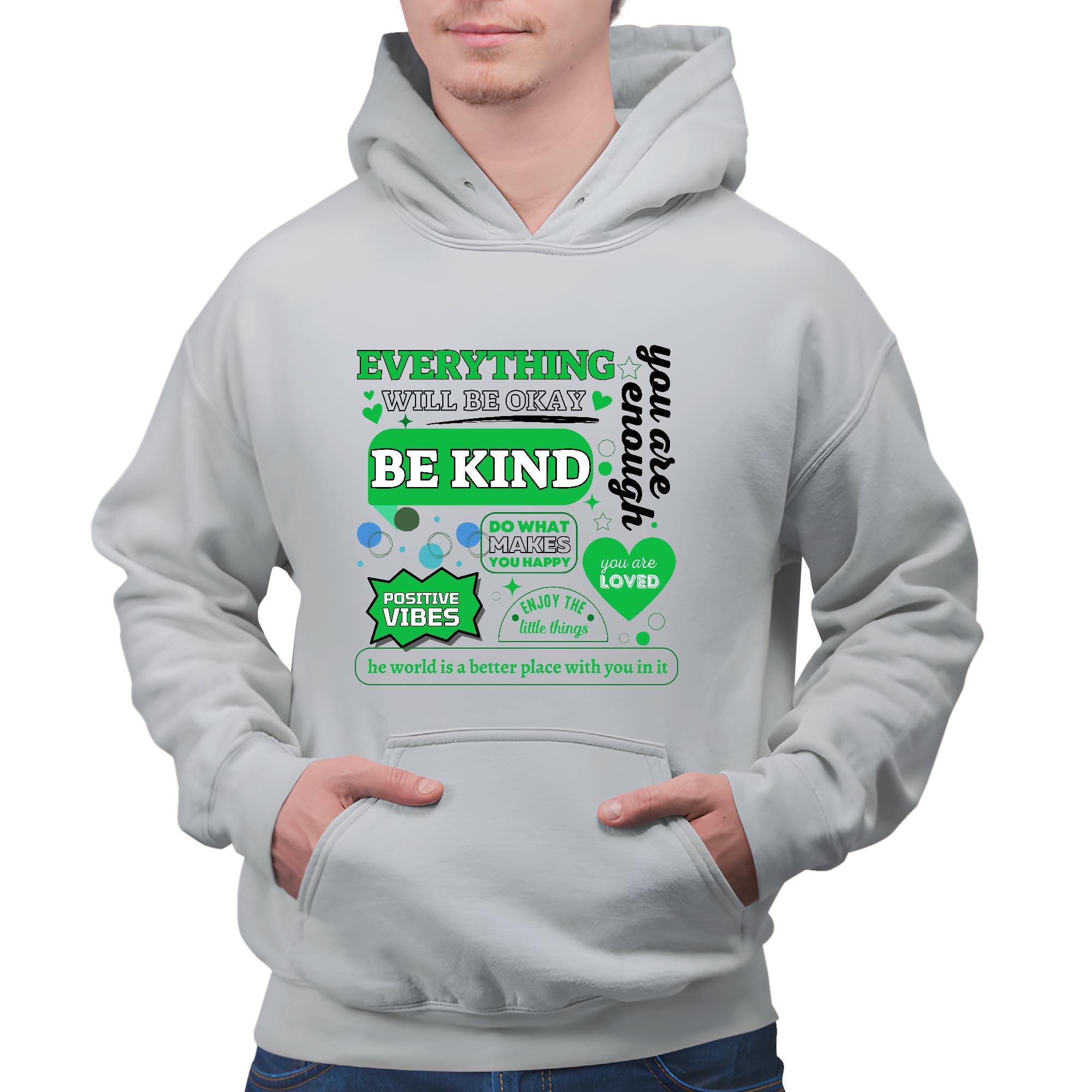 Motivational Quote Gifts for All Be Kind Positive Vibes and More Humor Quote Gray and Muticolor Unisex Hoodie