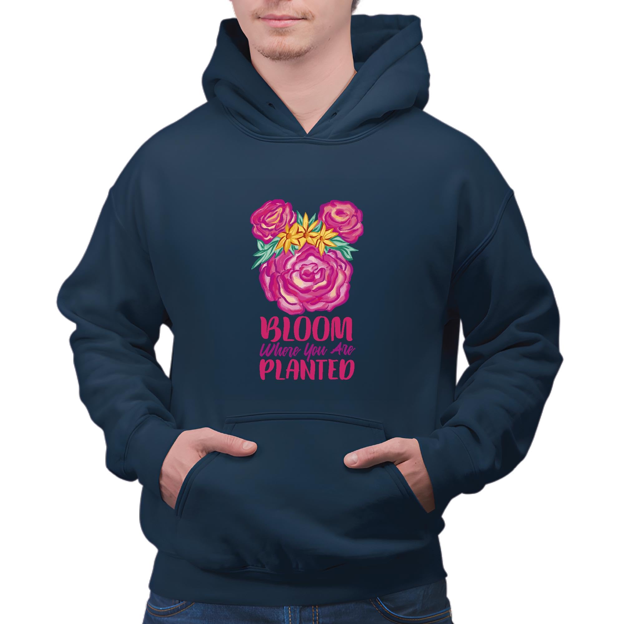 Motivational Quote Gifts Bloom Where You are in Style for Women and Teens Navy and Muticolor Unisex Hoodie