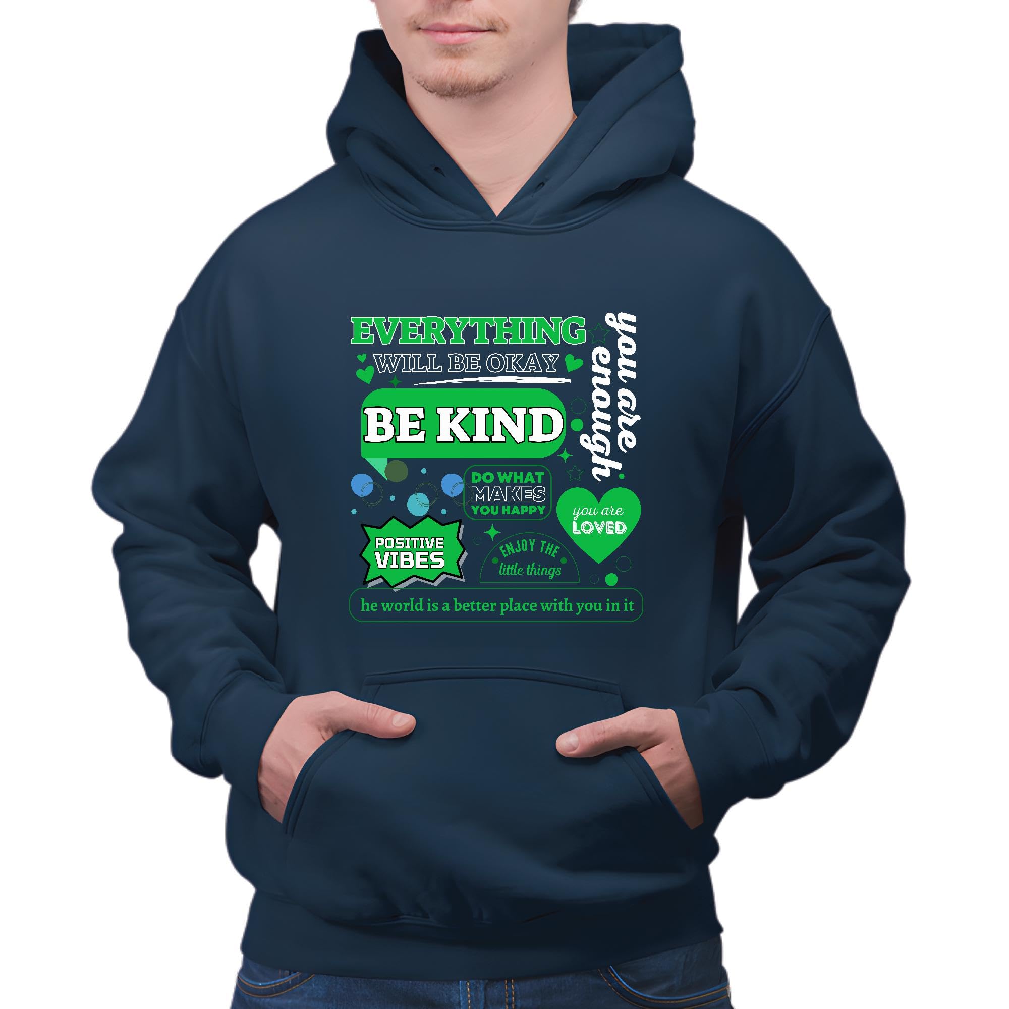 Motivational Quote Gifts for All Be Kind Positive Vibes and More Humor Quote Navy and Muticolor Unisex Hoodie