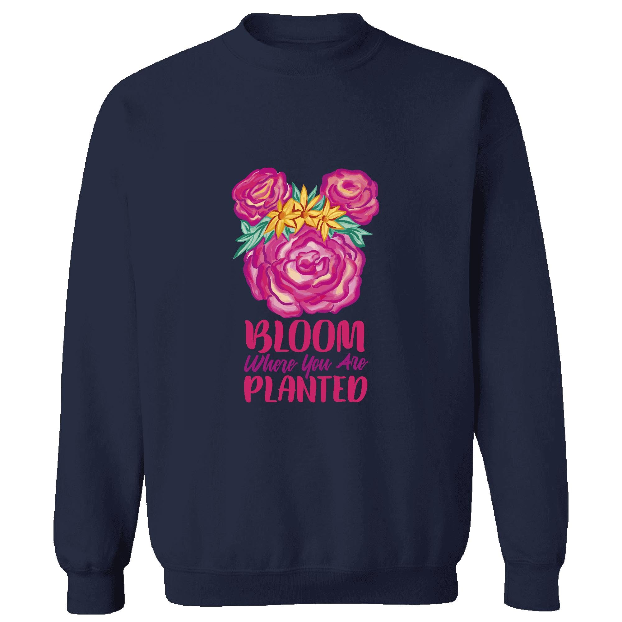 Motivational Quote Gifts Bloom Where You are in Style for Women and Teens Navy Muticolor Unisex Sweatshirt