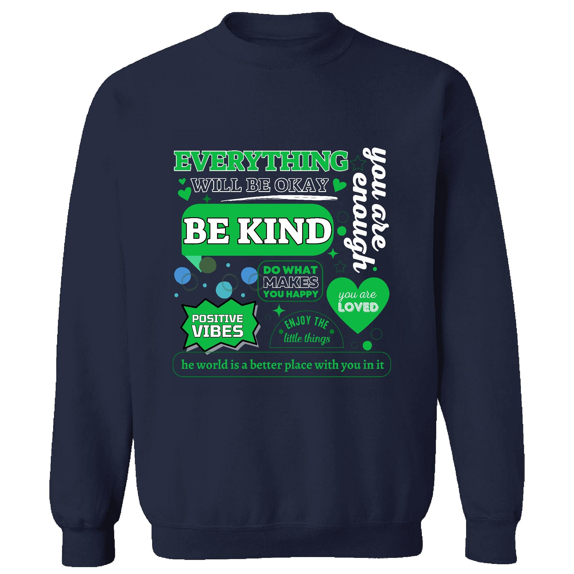 Motivational Quote Gifts for All Be Kind Positive Vibes and More Humor Quote Navy Muticolor Unisex Sweatshirt