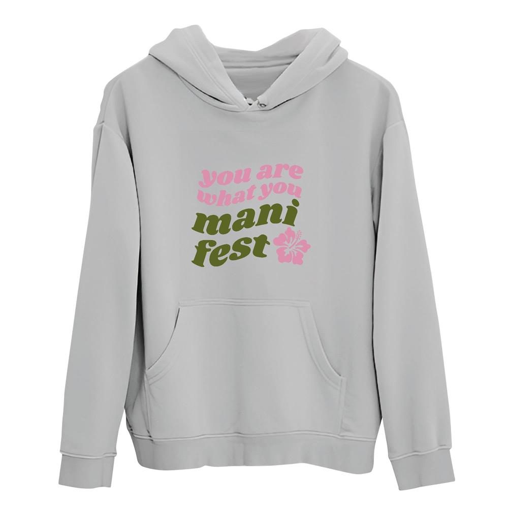 Motivational Quote You Are What You Manifest Gift for Girls and Women Gray and Muticolor Unisex Hoodie