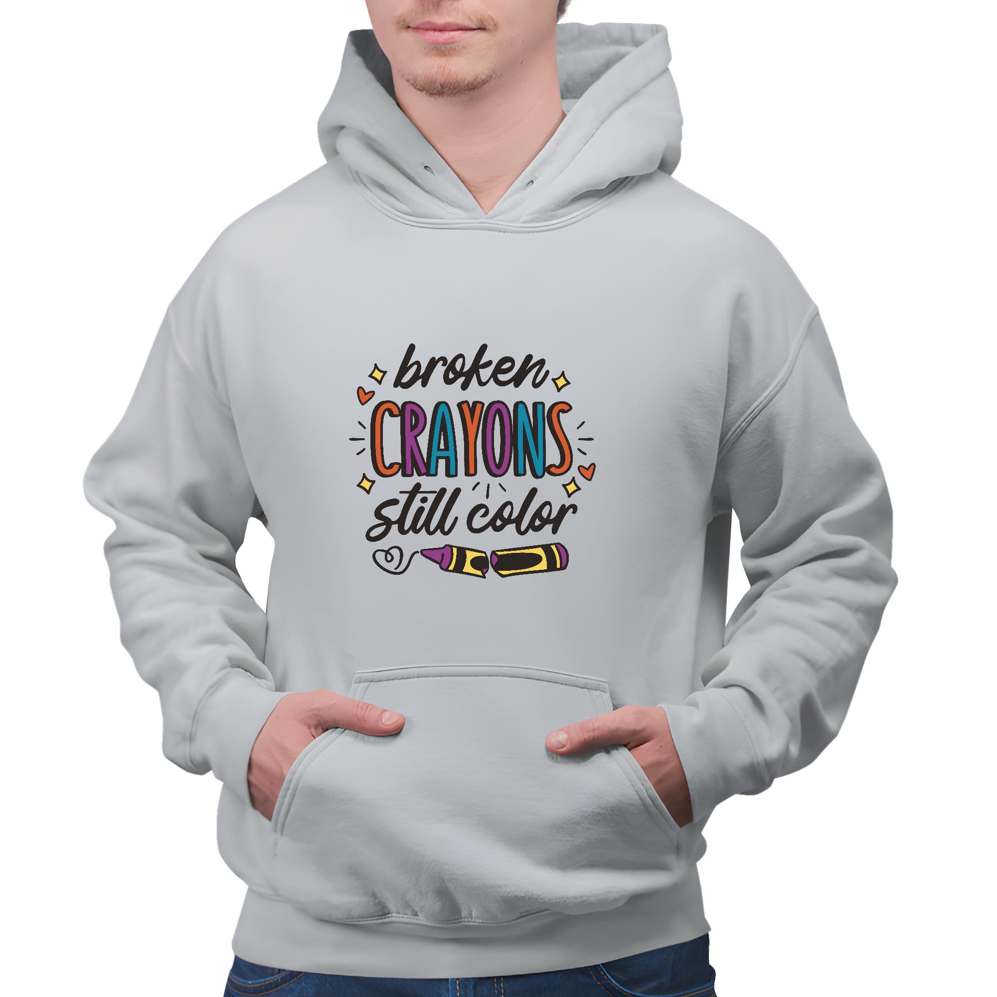 Motivational Quote Gifts for Teens and Adults Broken Crayons Still Color Gray and Muticolor Unisex Hoodie