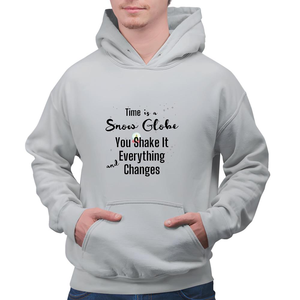 Motivational Saying Snow Globe Gift for Men Women Time Changes Everything Gray and Muticolor Unisex Hoodie