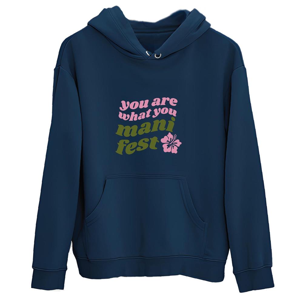 Motivational Quote You Are What You Manifest Gift for Girls and Women Navy and Muticolor Unisex Hoodie
