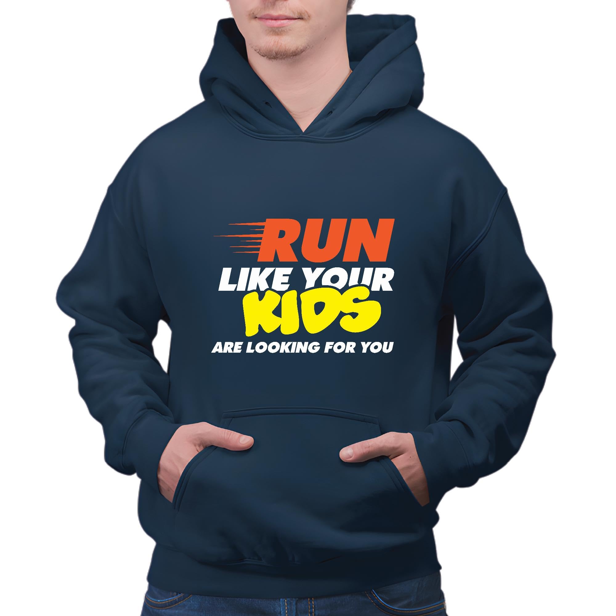 Motivational Running Gift for Runners Inspire to Run Like Your Kids are Looking For You Navy and Muticolor Unisex Hoodie