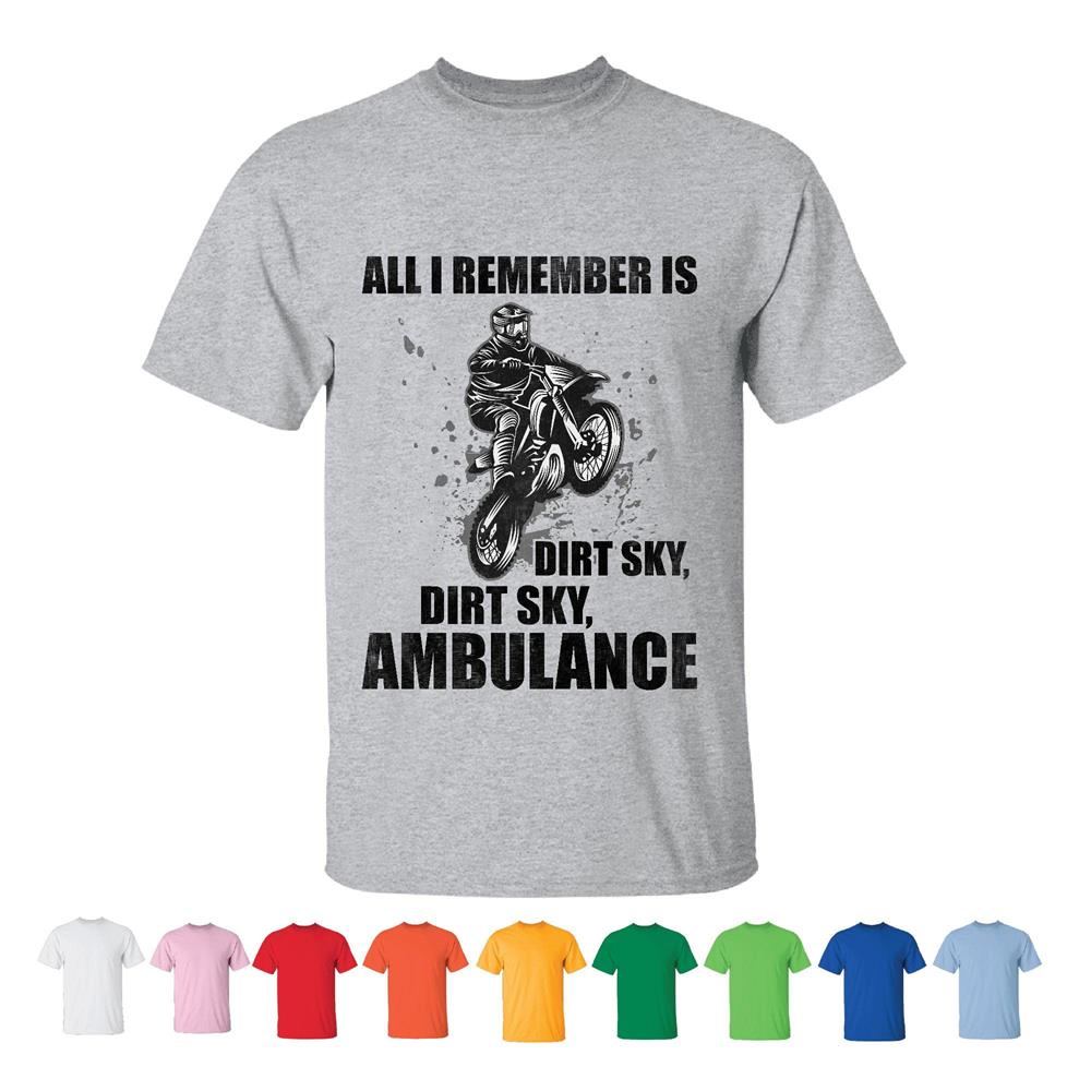 Motobike Racer saying all remember is dirt sky dird sky ambulance Motorcycles speed addict Men Women White Gray T shirt