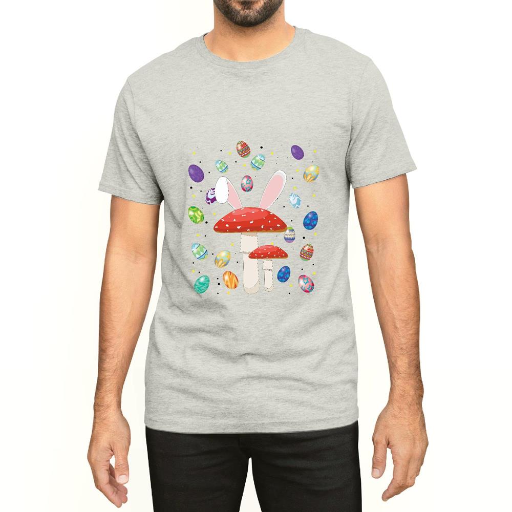 Mushroom Lover Easter Egg funny Happy Easter Day Men Women White Gray Multicolor T shirt