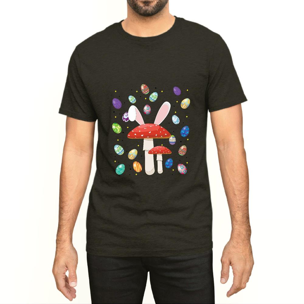 Mushroom Lover Easter Egg funny Happy Easter Day Men Women Black Multicolor T shirt