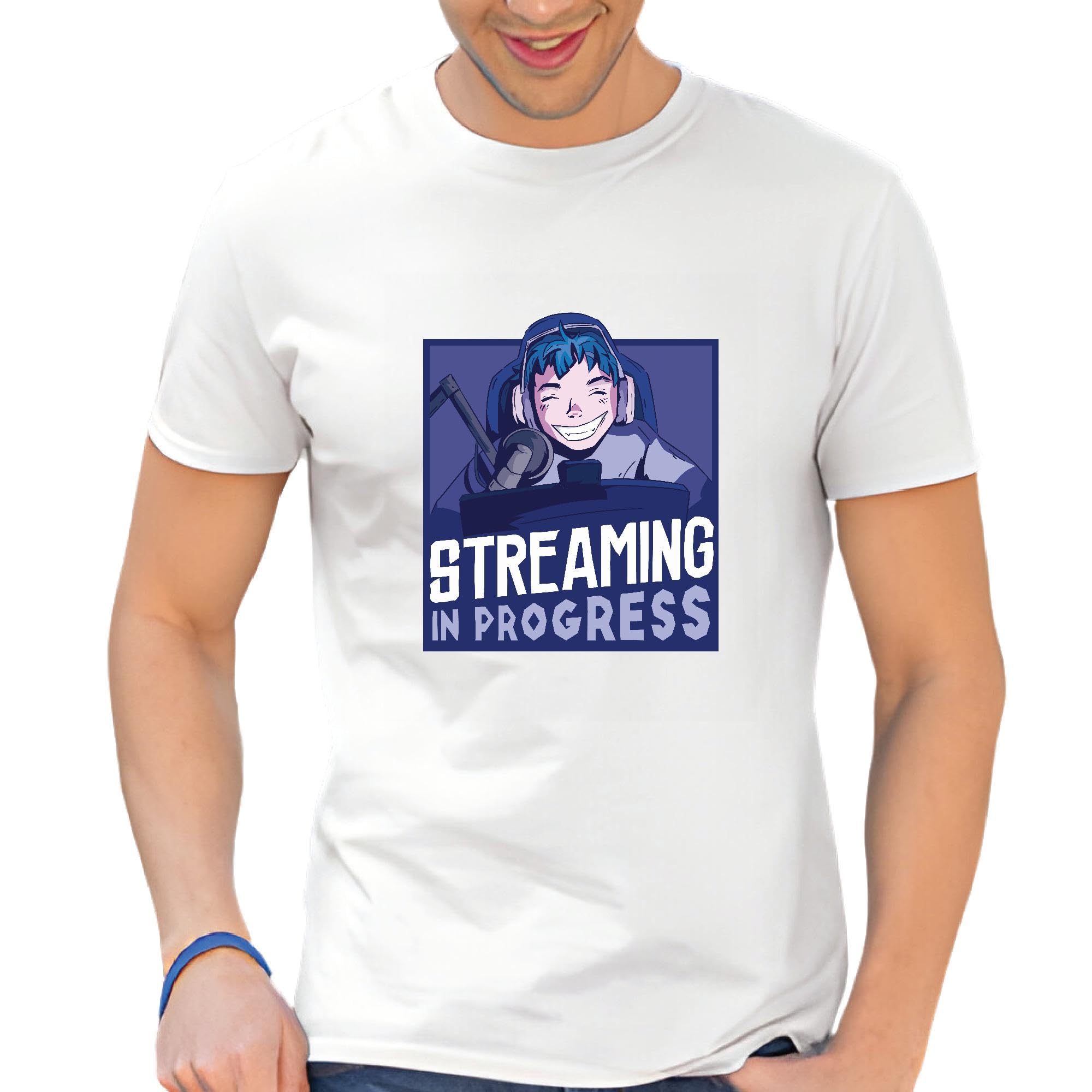 Music Lover Gift Boy with Headphones Microphone Quote Streaming in Progress Men Women White Gray Multicolor T shirt