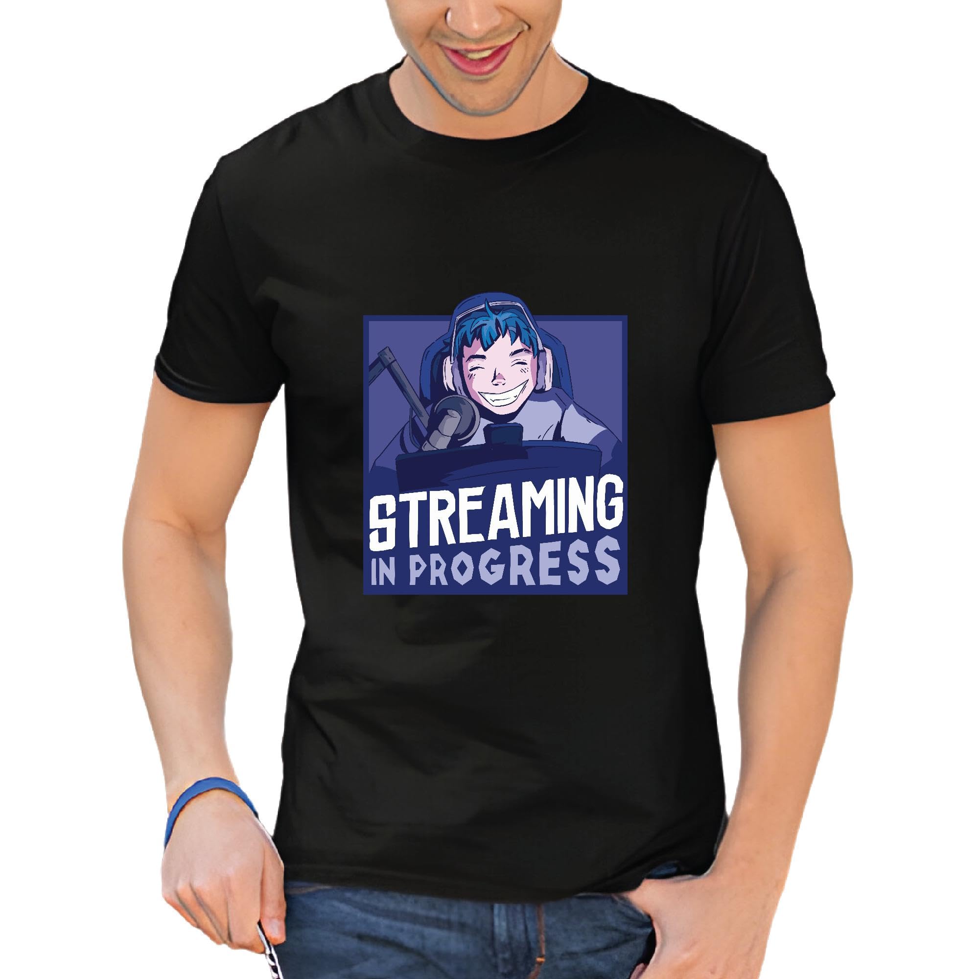 Music Lover Gift Boy with Headphones Microphone Quote Streaming in Progress Men Women Black Multicolor T shirt