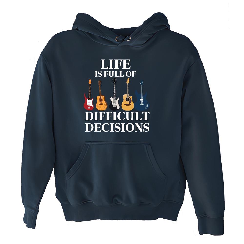 Music Lover life is full of difficult decisions for Guitarist Guitar Lover Navy and Muticolor Unisex Hoodie