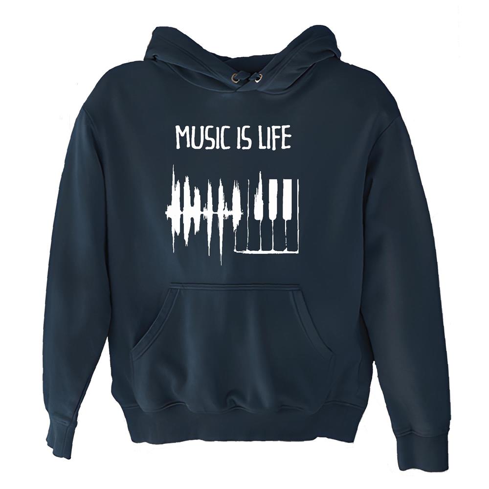 Music Lovers GiftPianist Graphic Design Music is Life Piano Navy and Muticolor Unisex Hoodie