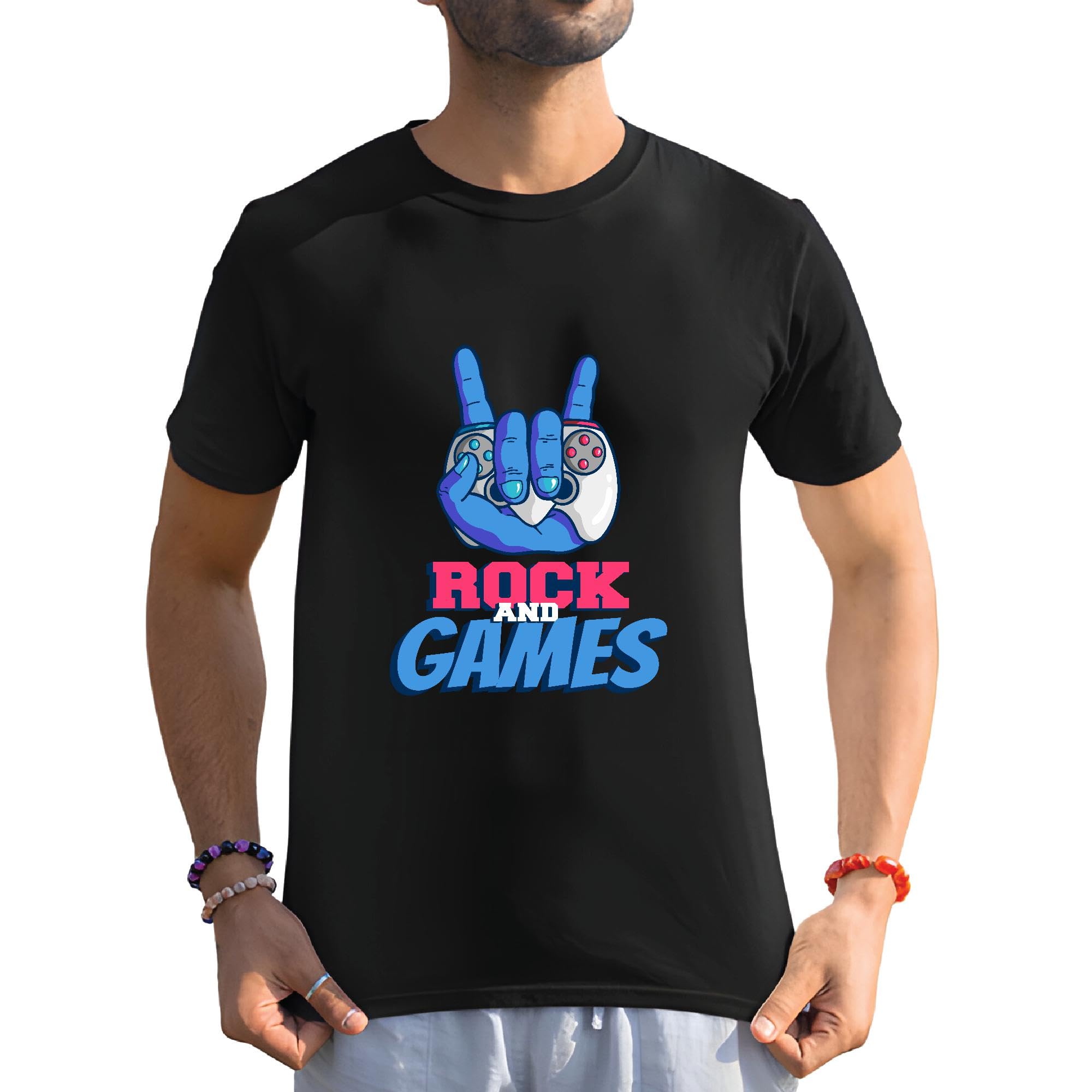 Music Lovers Gift Rock and Games Hand Sign with Video Game Controller for Music Fans Men Women Black Multicolor T shirt