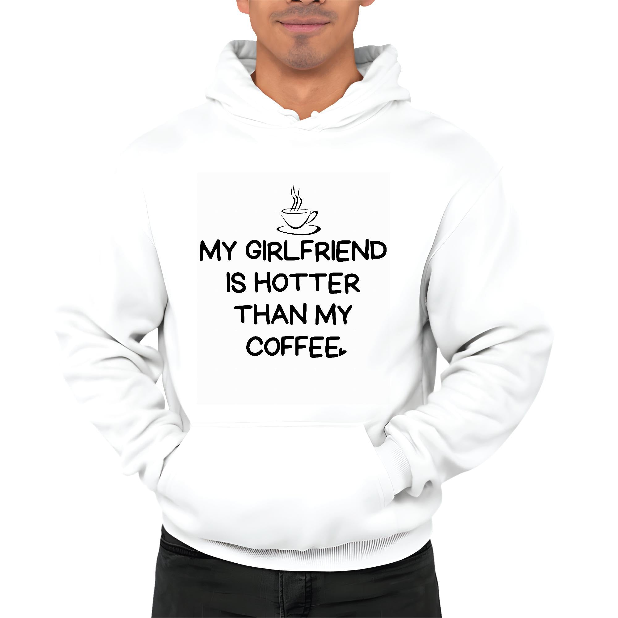 My Girlfriend is hotter than my Coffee humor for Couple White and Muticolor Unisex Hoodie