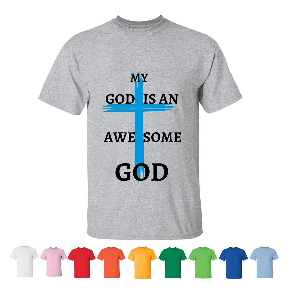 My God is an awesome God Christian religious Men Women White Gray T shirt