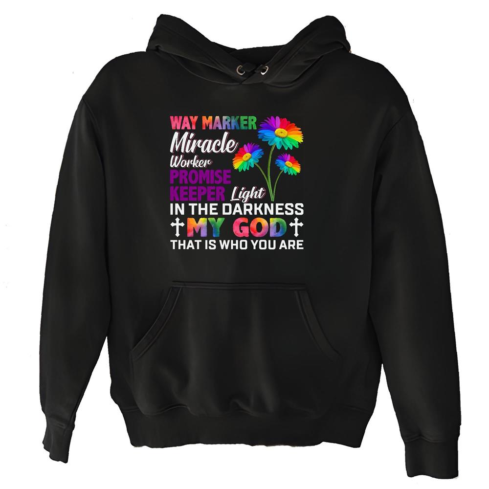 My God that is who you are way maker miracle worker light from Jesus God lover Black and Muticolor Unisex Hoodie