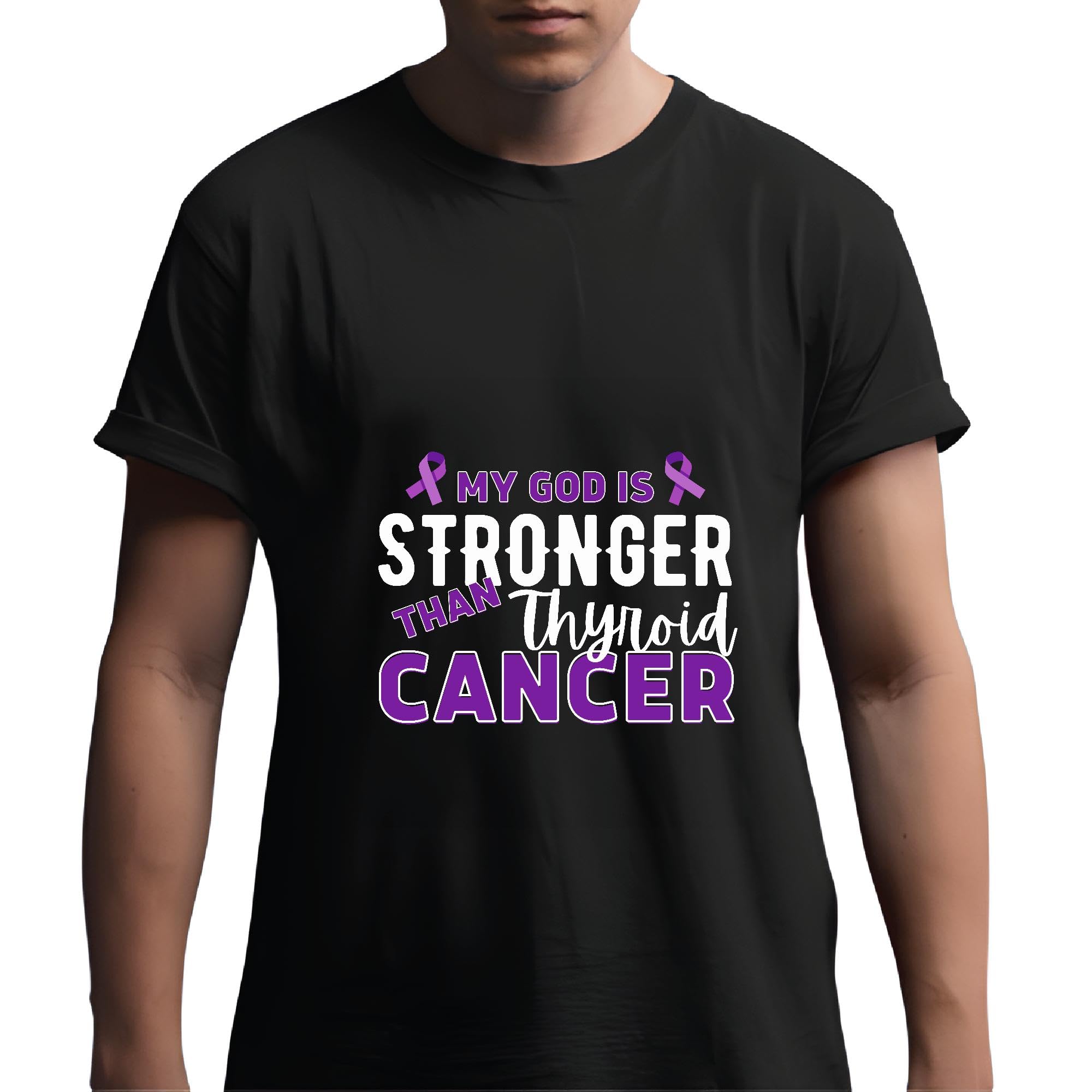 My God is stronger than Thyroid Cancer awareness purple ribbon Men Women Black Multicolor T shirt
