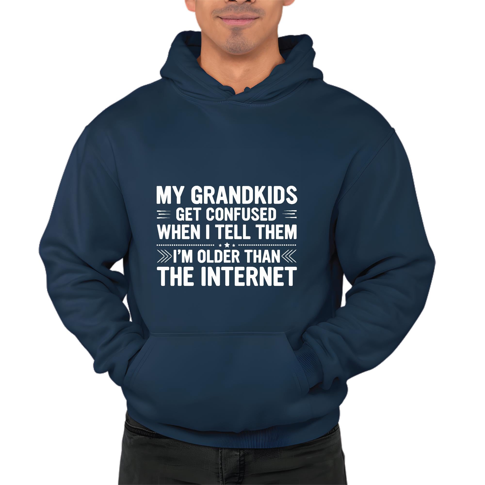 My Grandkids get confused when I tell them I am older internet humor saying Navy and Muticolor Unisex Hoodie