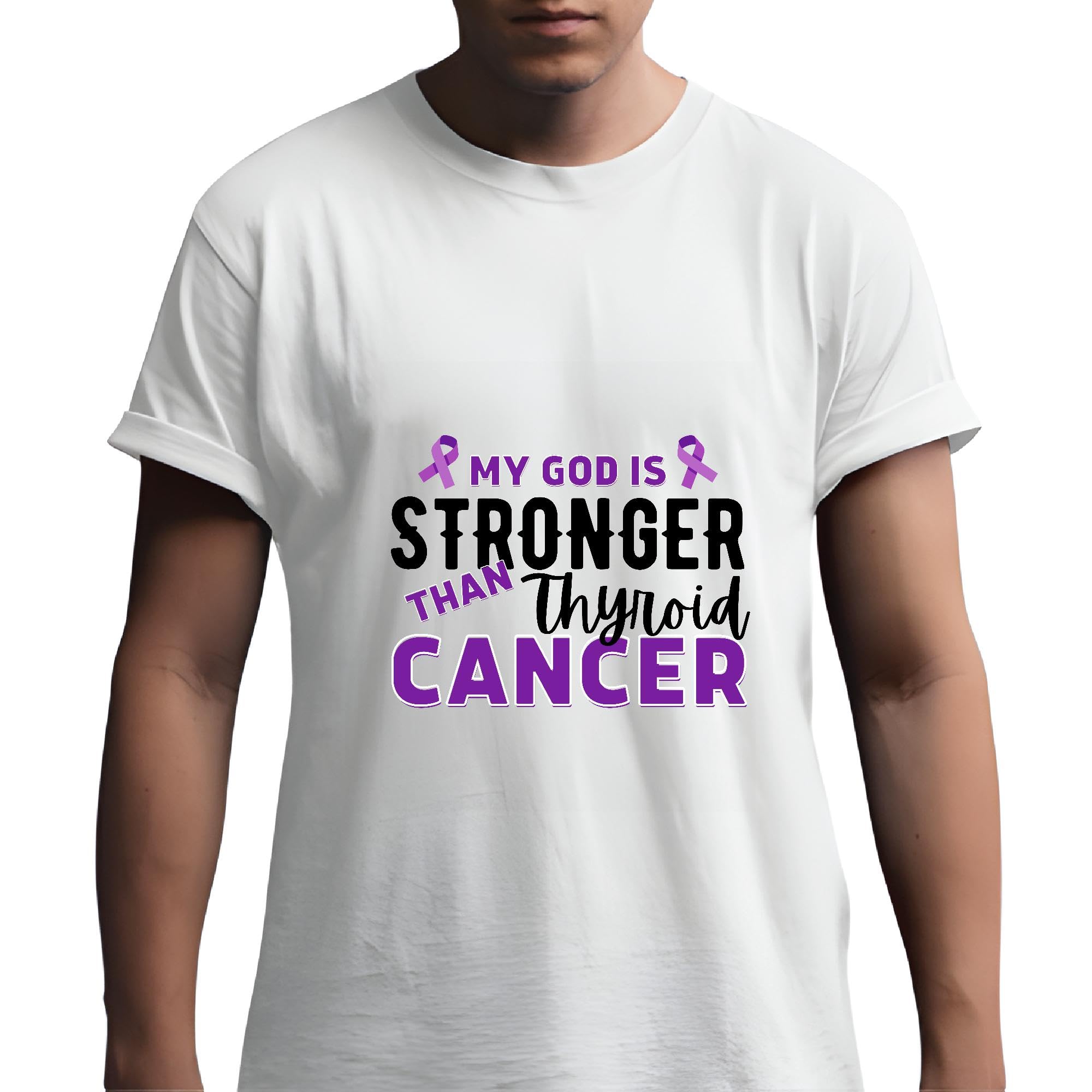 My God is stronger than Thyroid Cancer awareness purple ribbon Men Women White Gray Multicolor T shirt