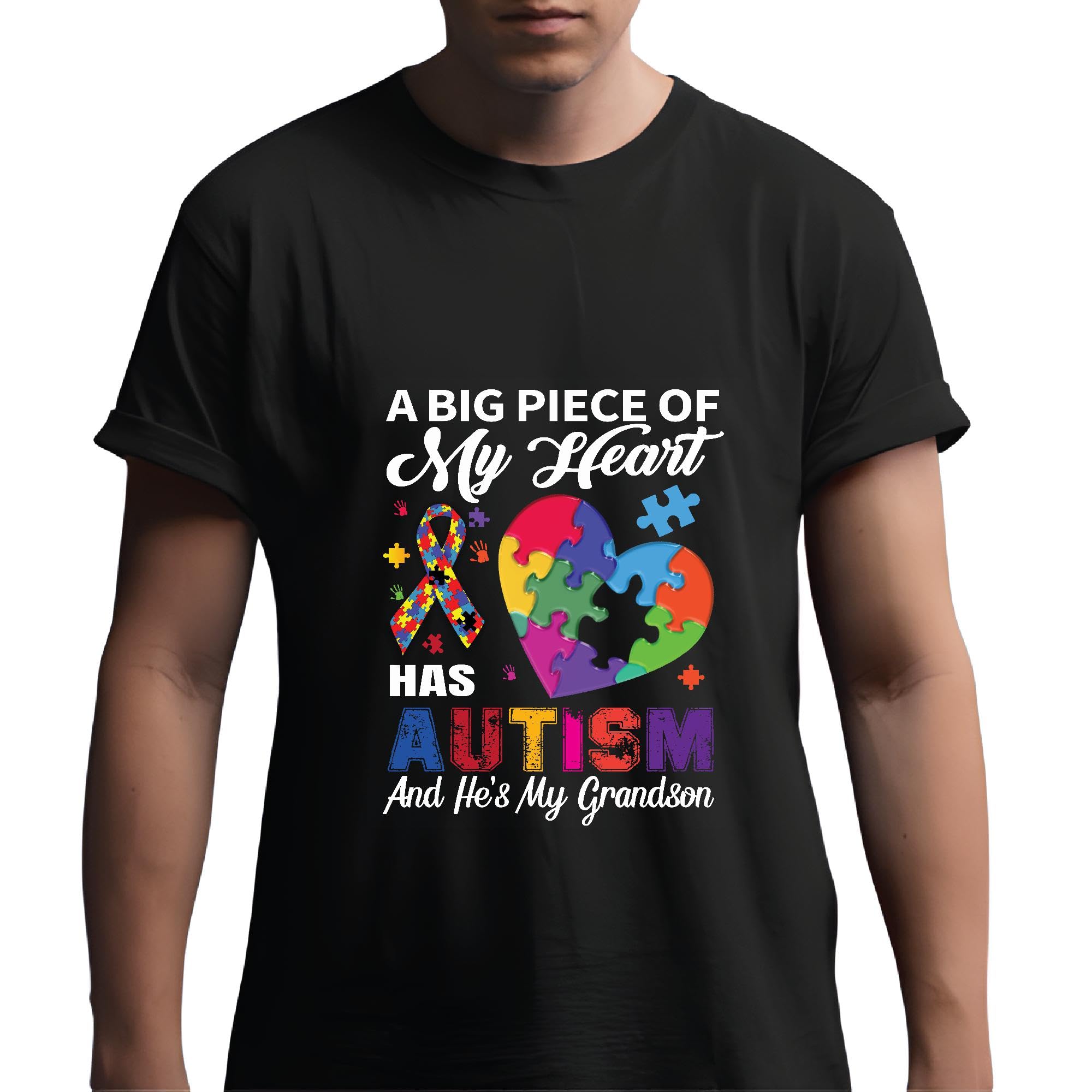 My Grandson Has Autism Proudly Show Your Support with This design for Grandparents Men Women Black Multicolor T shirt