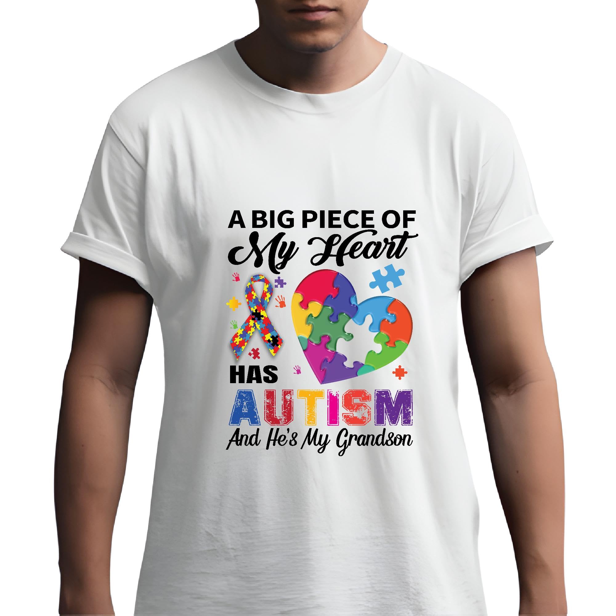 My Grandson Has Autism Proudly Show Your Support with This design for Grandparents Men Women White Gray Multicolor T shirt