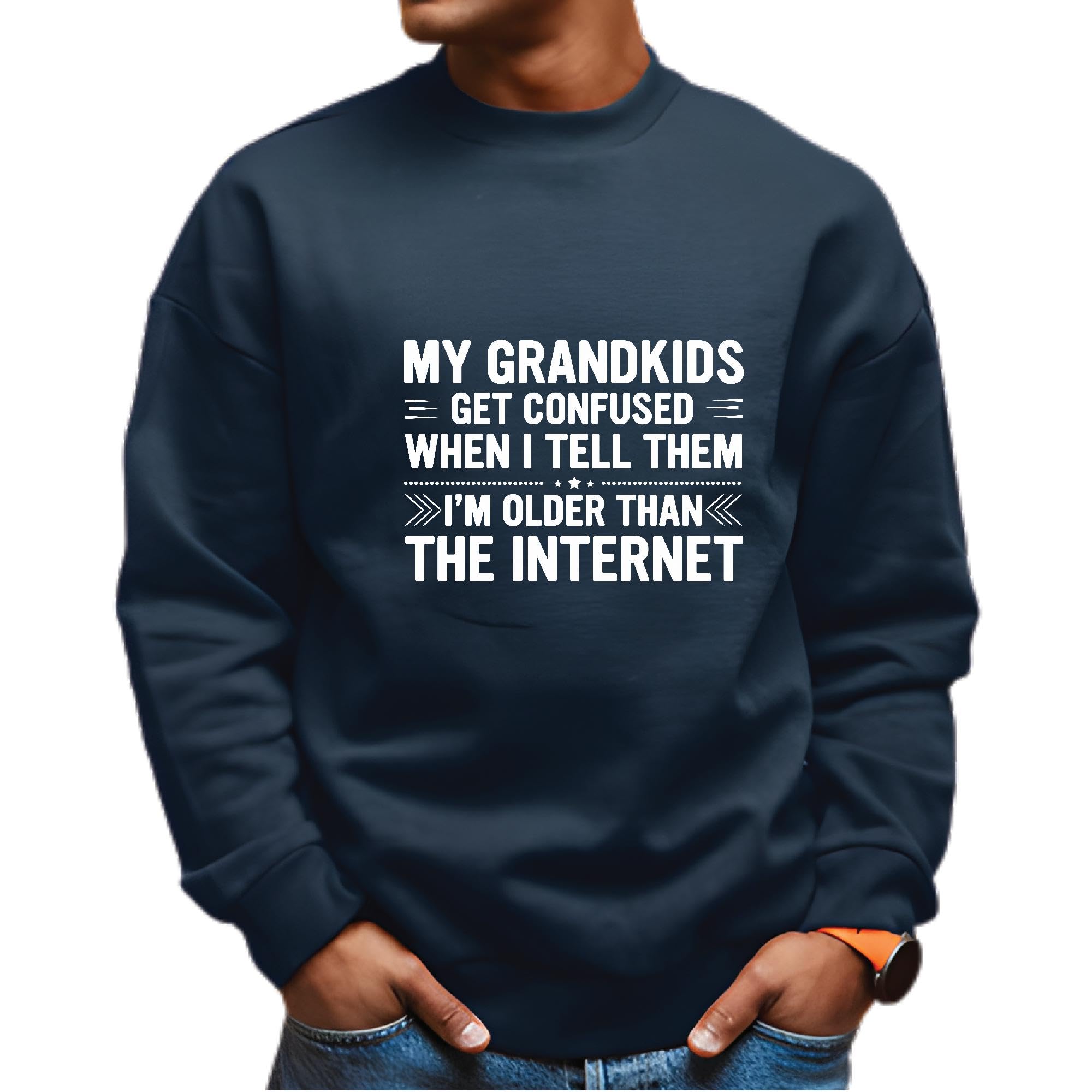 My Grandkids get confused when I tell them I am older internet humor saying Navy Muticolor Unisex Sweatshirt