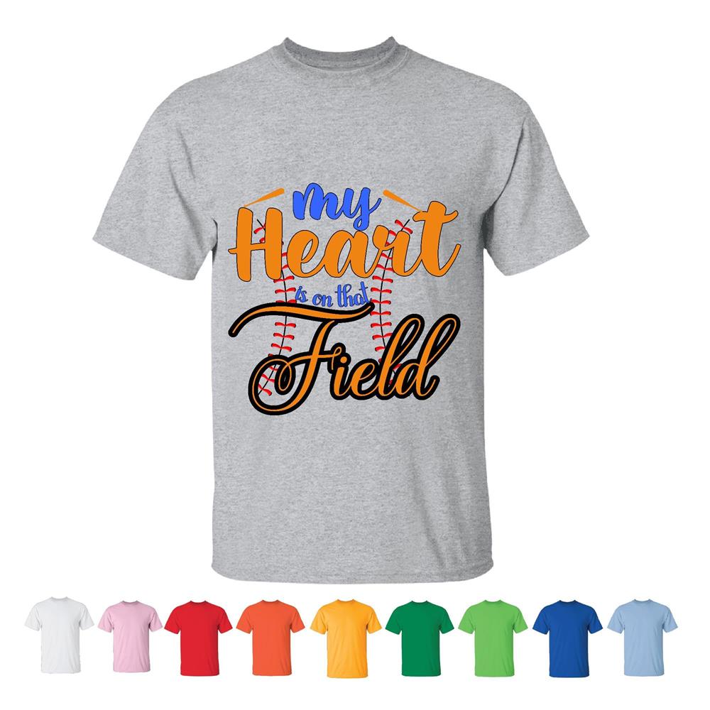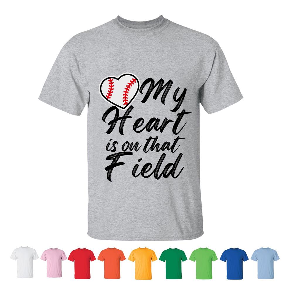 My Heart is on That Field inspiring quote for Baseball Enthusiasts Men Women White Gray T shirt