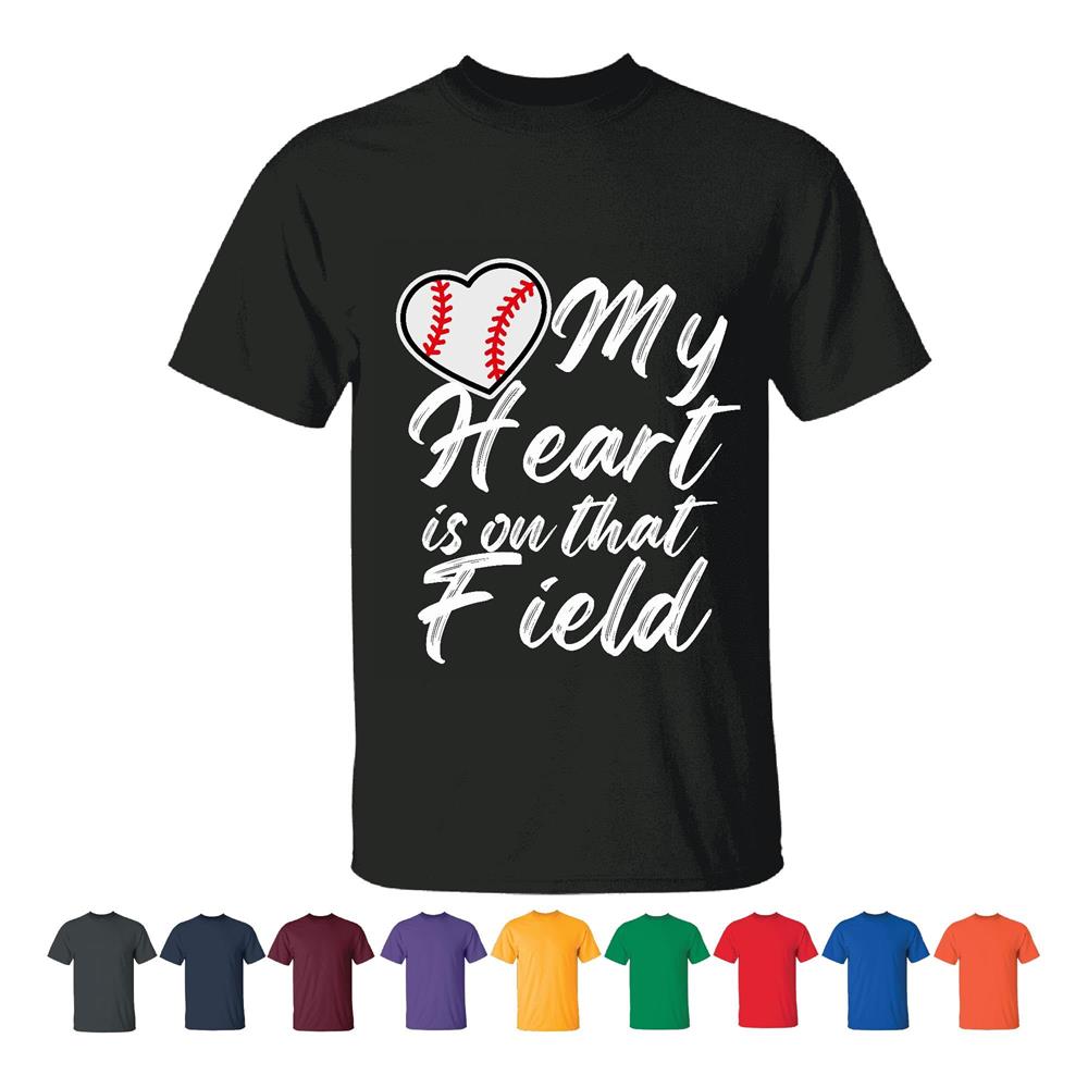 My Heart is on That Field Baseball Softball Mom Gifts Men Women Black T shirt