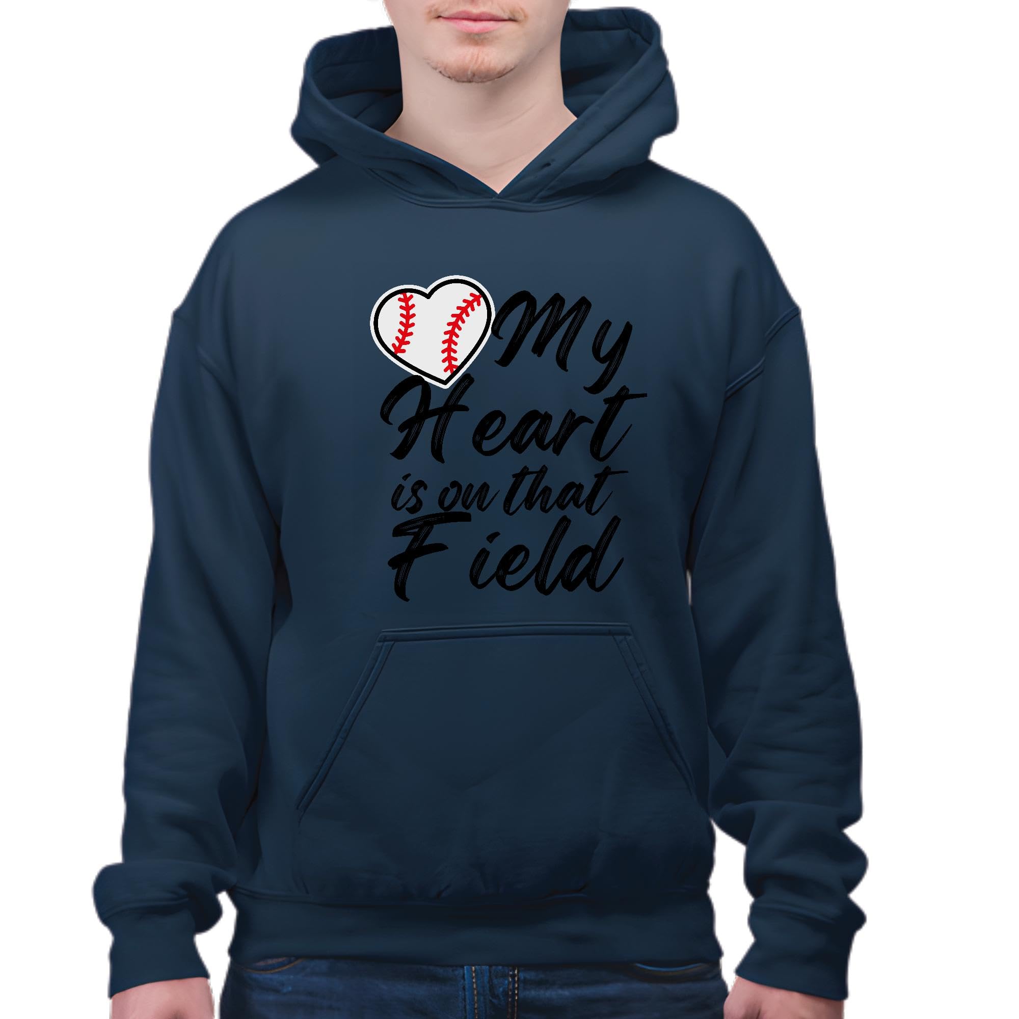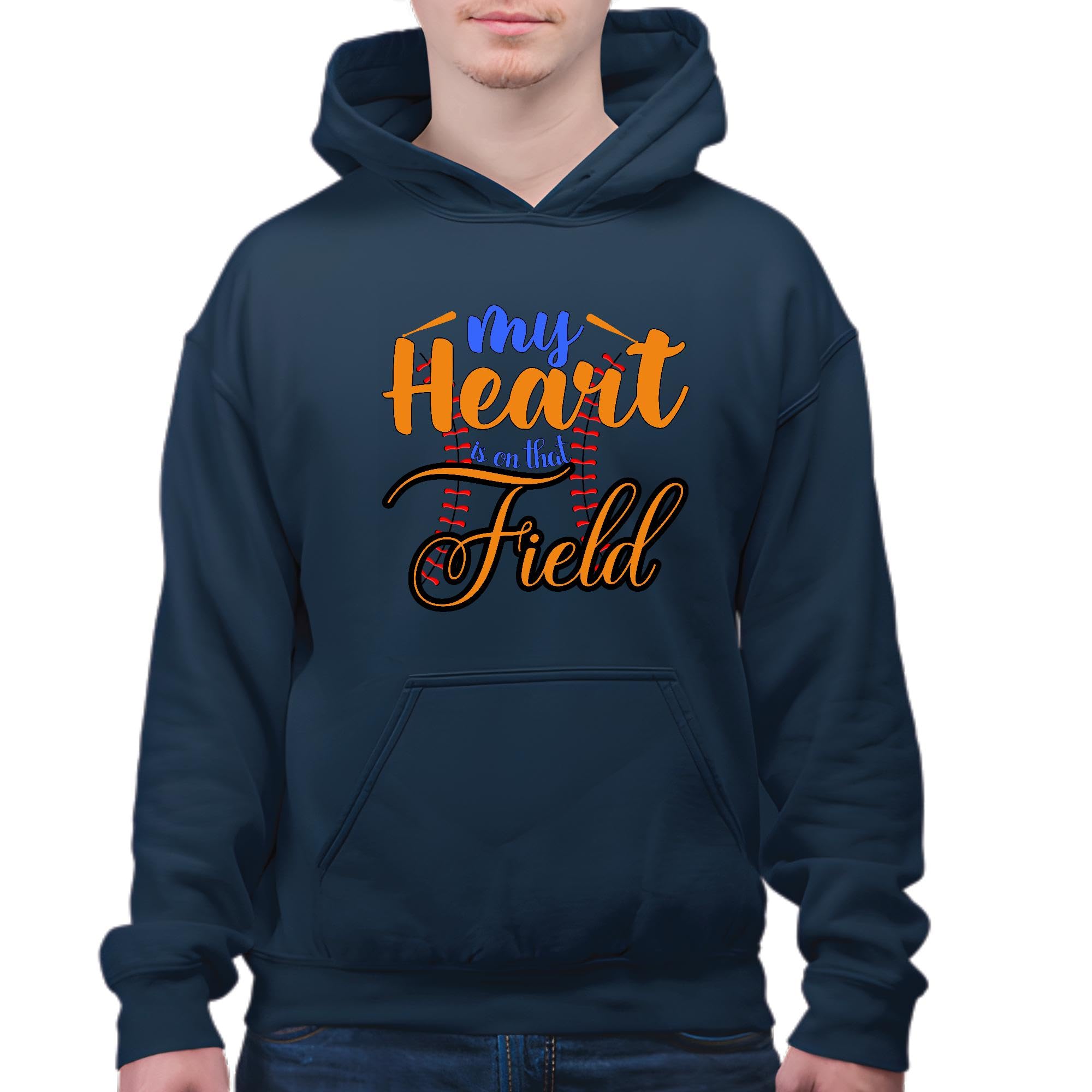 My Heart is on That Field Baseball Softball Mom Gifts Navy and Muticolor Unisex Hoodie