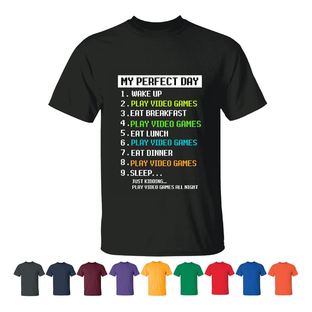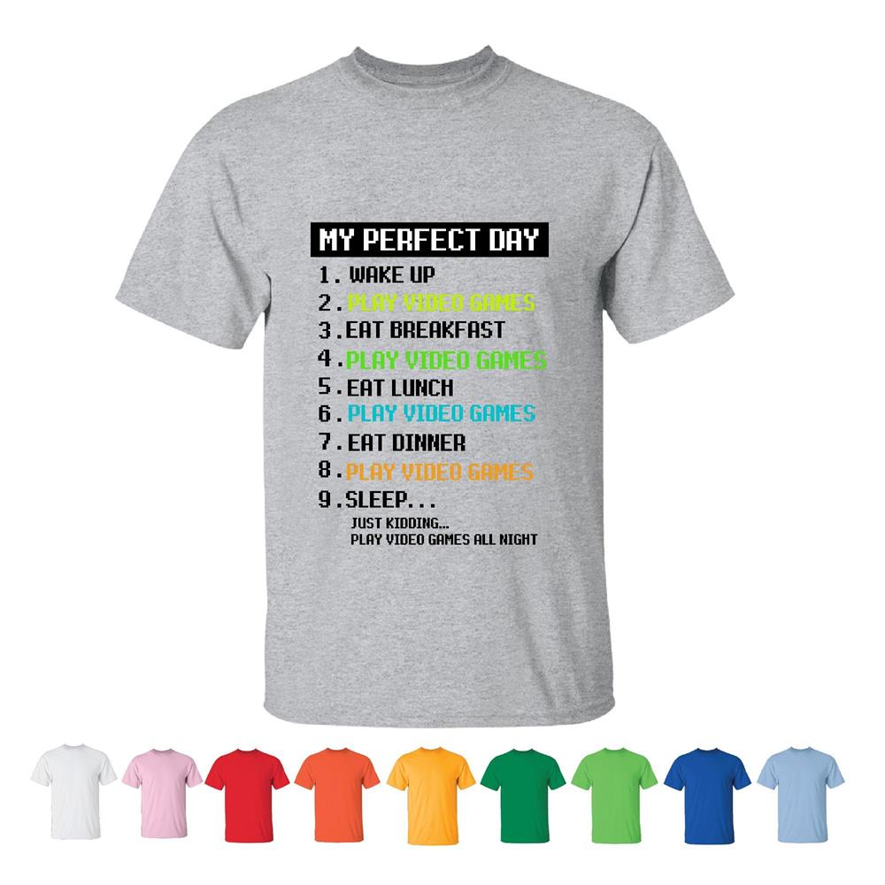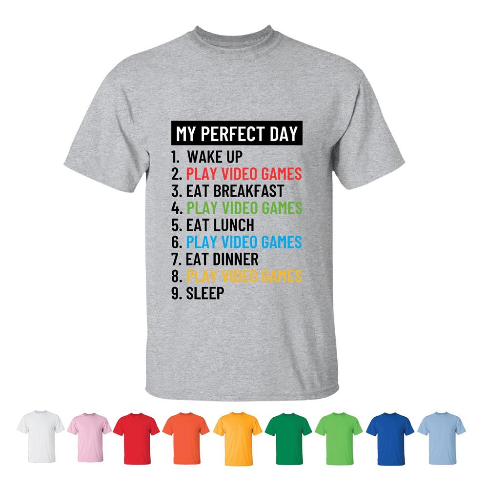 My Perfect Day Video Games funny for Gamer Men Women White Gray T shirt