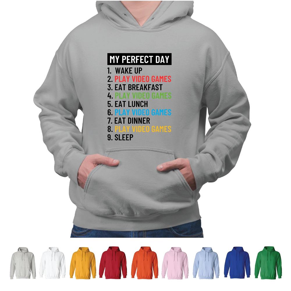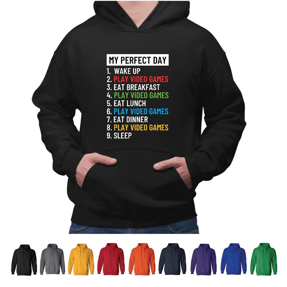 My perfect day play video games funny for Gamer Gray and Muticolor Unisex Hoodie