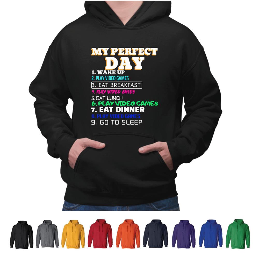 My perfect day play video games funny for Gamer Black and Muticolor Unisex Hoodie