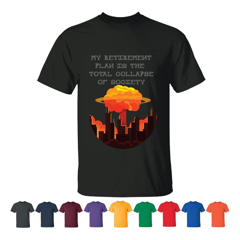 My Retirement Plan is the total collapse of society humor saying Pensioner joking Men Women Black T shirt