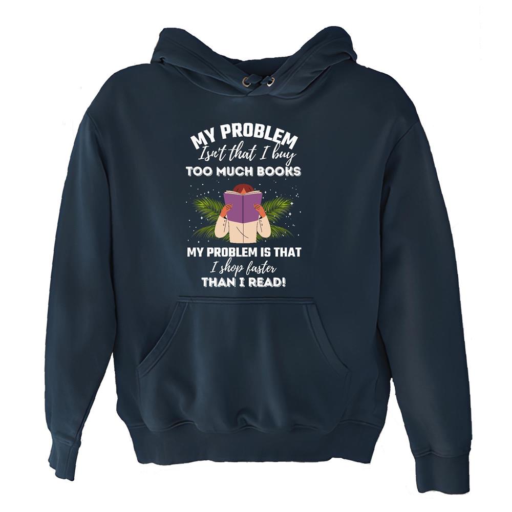 My problem is that I shop faster than I Read funny saying for Reader Bookworm Book lover Navy and Muticolor Unisex Hoodie