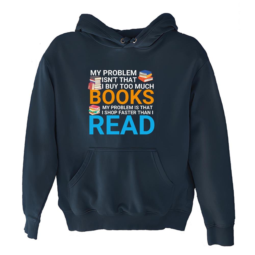 My problem isnt that I buy too much Books humor quote for Bookworm Book lover Navy and Muticolor Unisex Hoodie