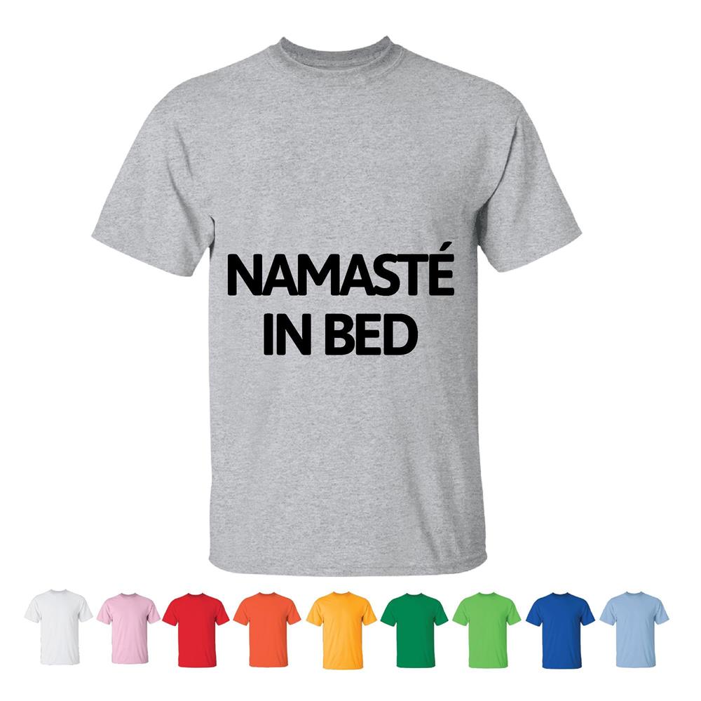 Namaste in Bed funny for Yoga Lover Men Women White Gray T shirt