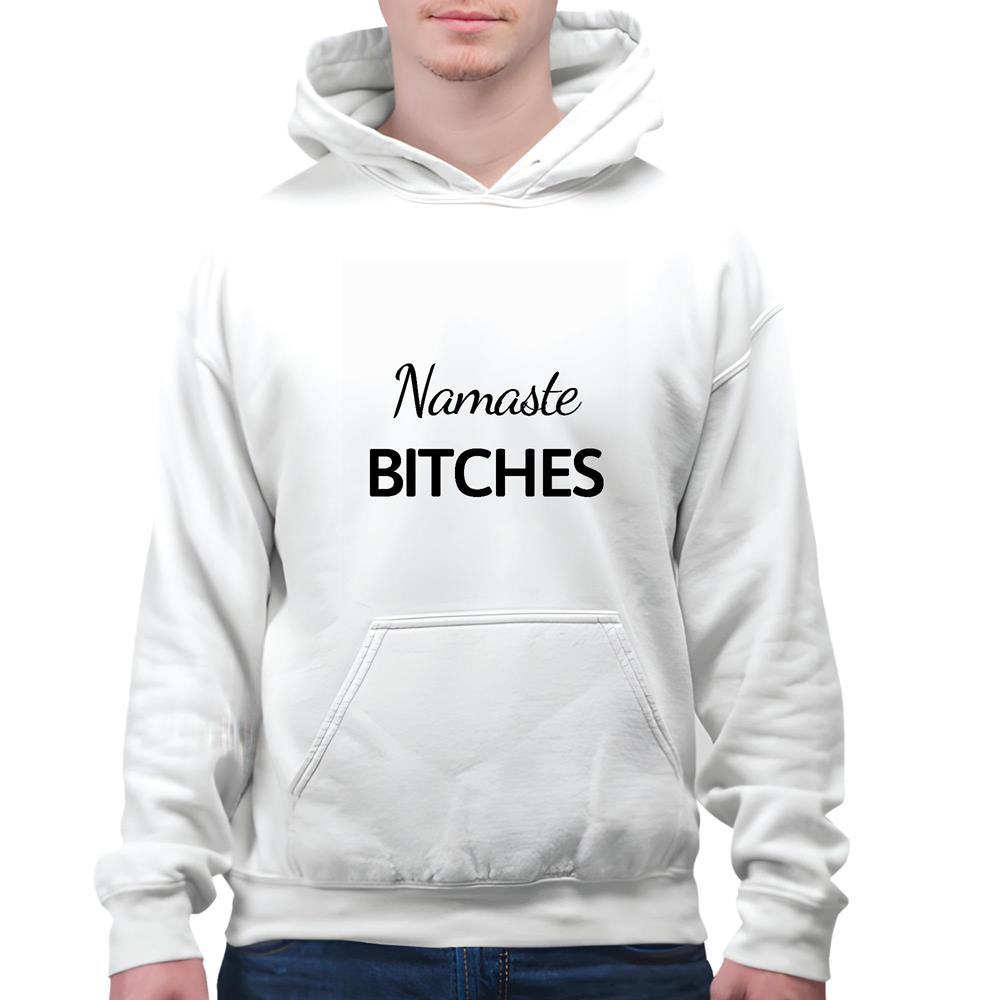 Namaste Bitches Yoga funny saying White and Muticolor Unisex Hoodie