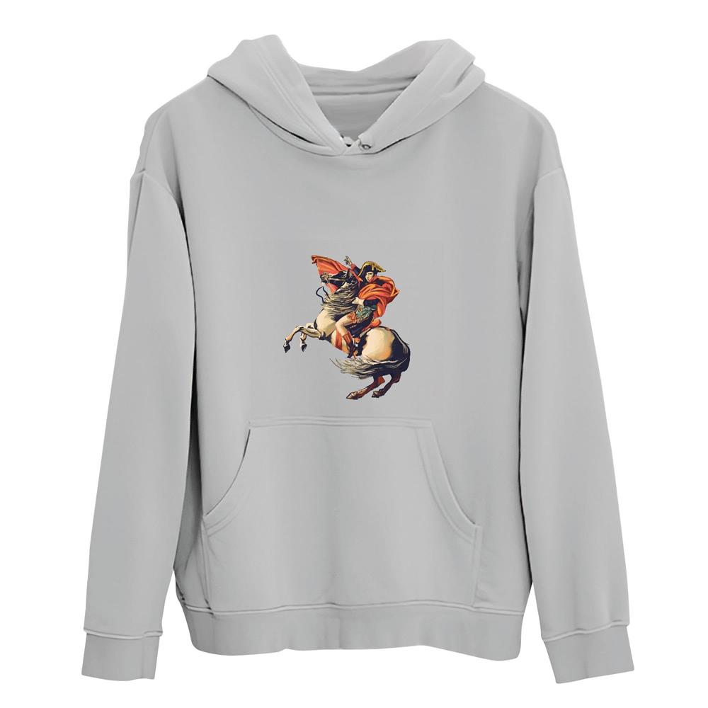 Napoleon Portrait Gift An Illustration of Napoleon Riding a Horse for History Lovers Gray and Muticolor Unisex Hoodie