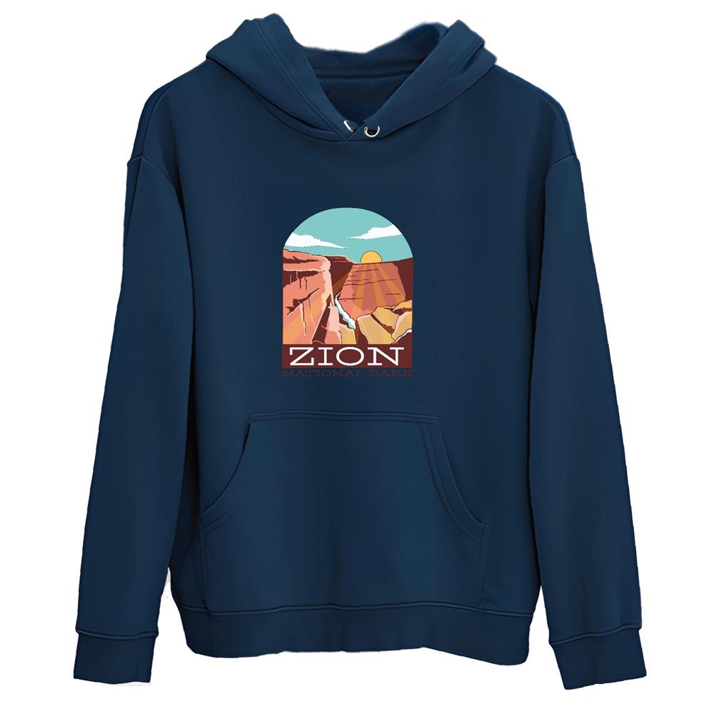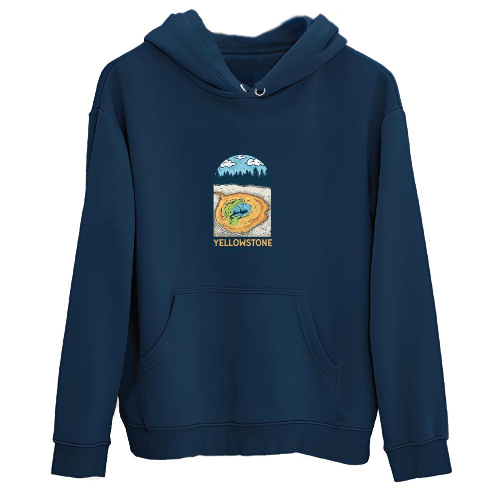 National Park Gift Illustrative Artwork for Nature Lovers and Adventurers Navy and Muticolor Unisex Hoodie