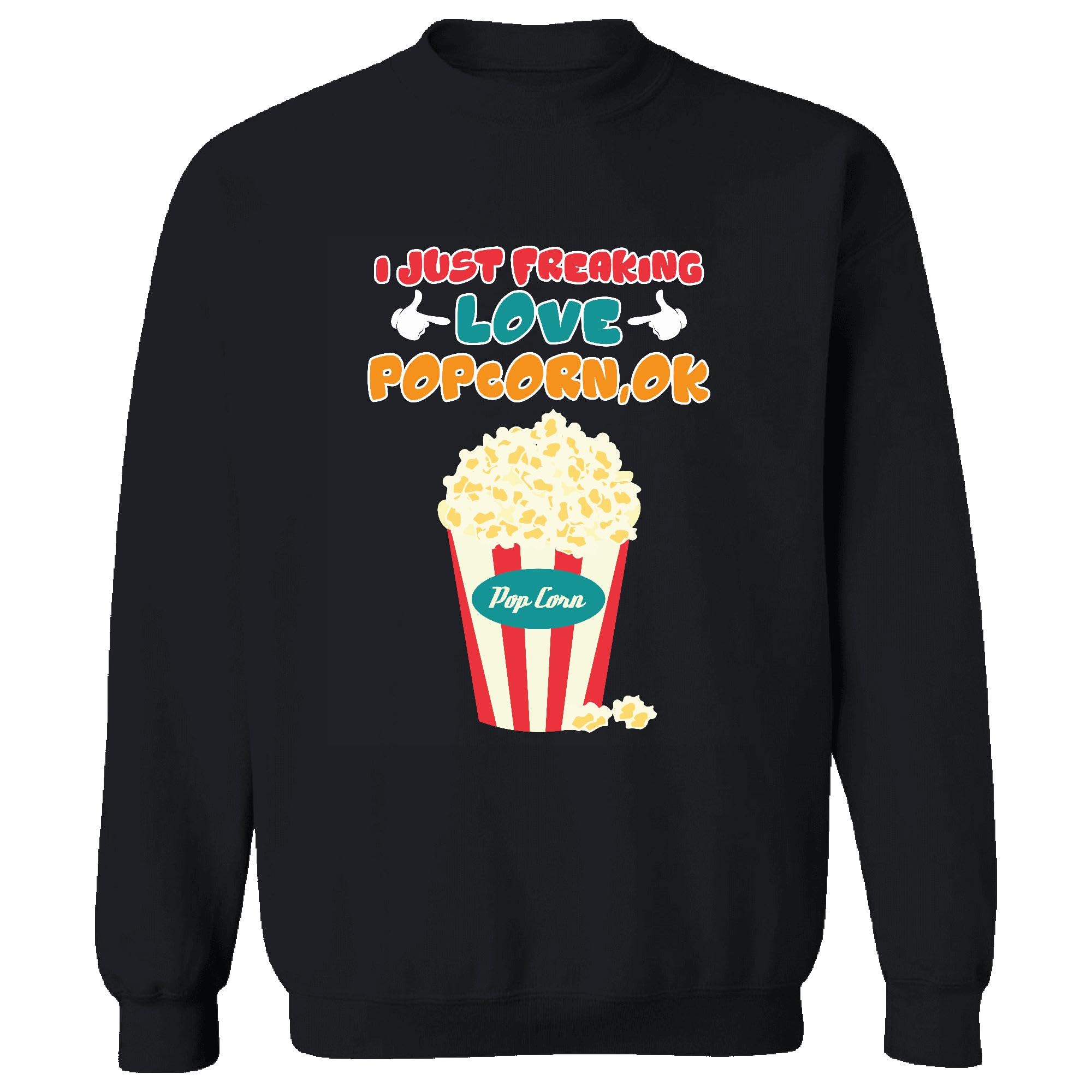 National Popcorn Day Gift for Popcorn Lovers I Just Freaking Love Popcorn OK Black Muticolor Unisex Sweatshirt