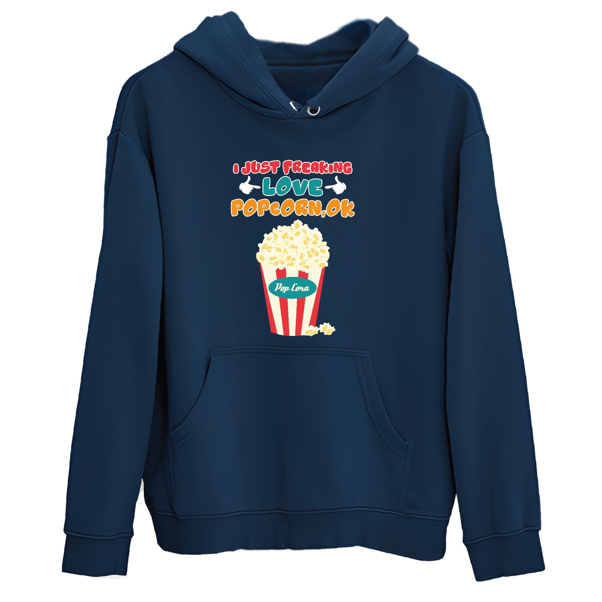 National Popcorn Day Gift for Popcorn Lovers I Just Freaking Love Popcorn OK Navy and Muticolor Unisex Hoodie