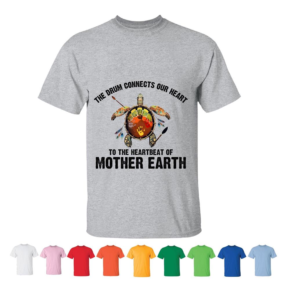 Native American Gift Idea – The Drum Connects Our Heart for Indigenous Customers Men Women White Gray T shirt