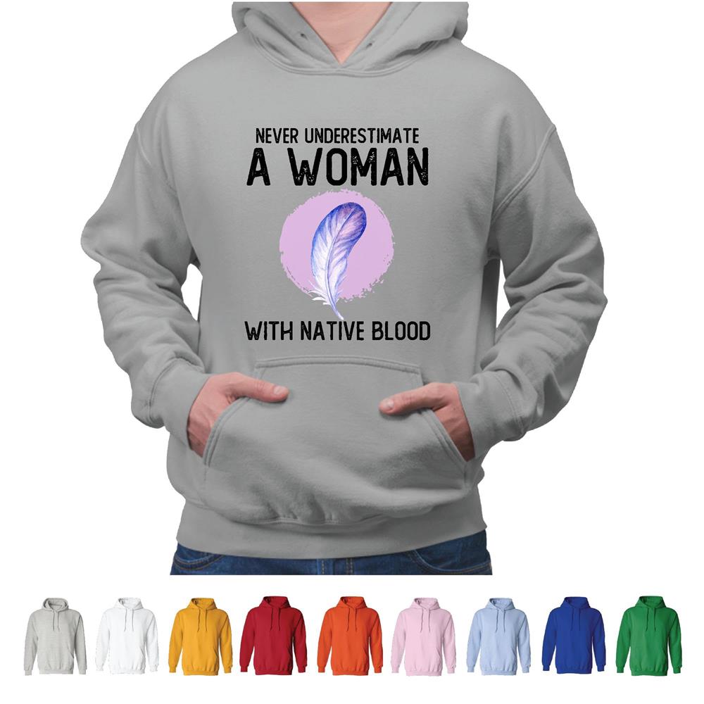 Native American Gift idea Never Underestimate Woman Blood Gift Idea Gray and Muticolor Unisex Hoodie