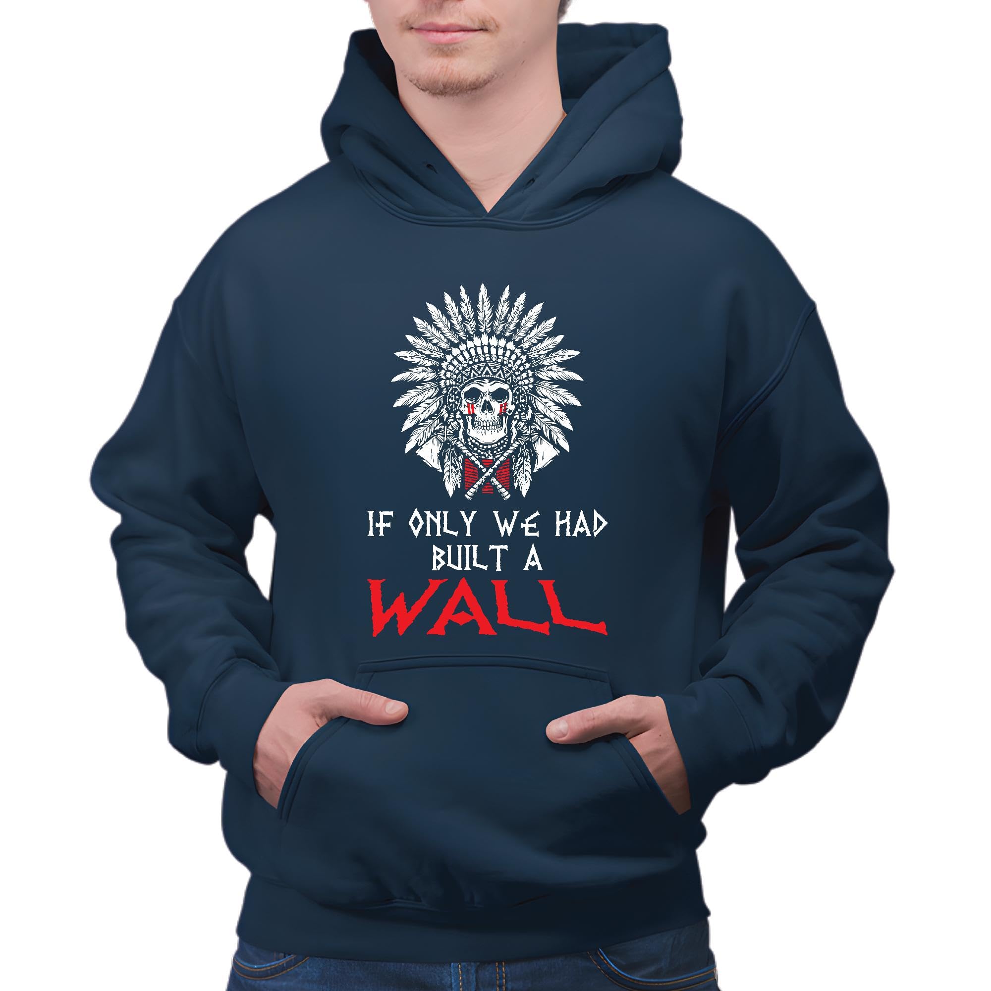 Native American Gift Idea Show Support for Building a Wall Navy and Muticolor Unisex Hoodie