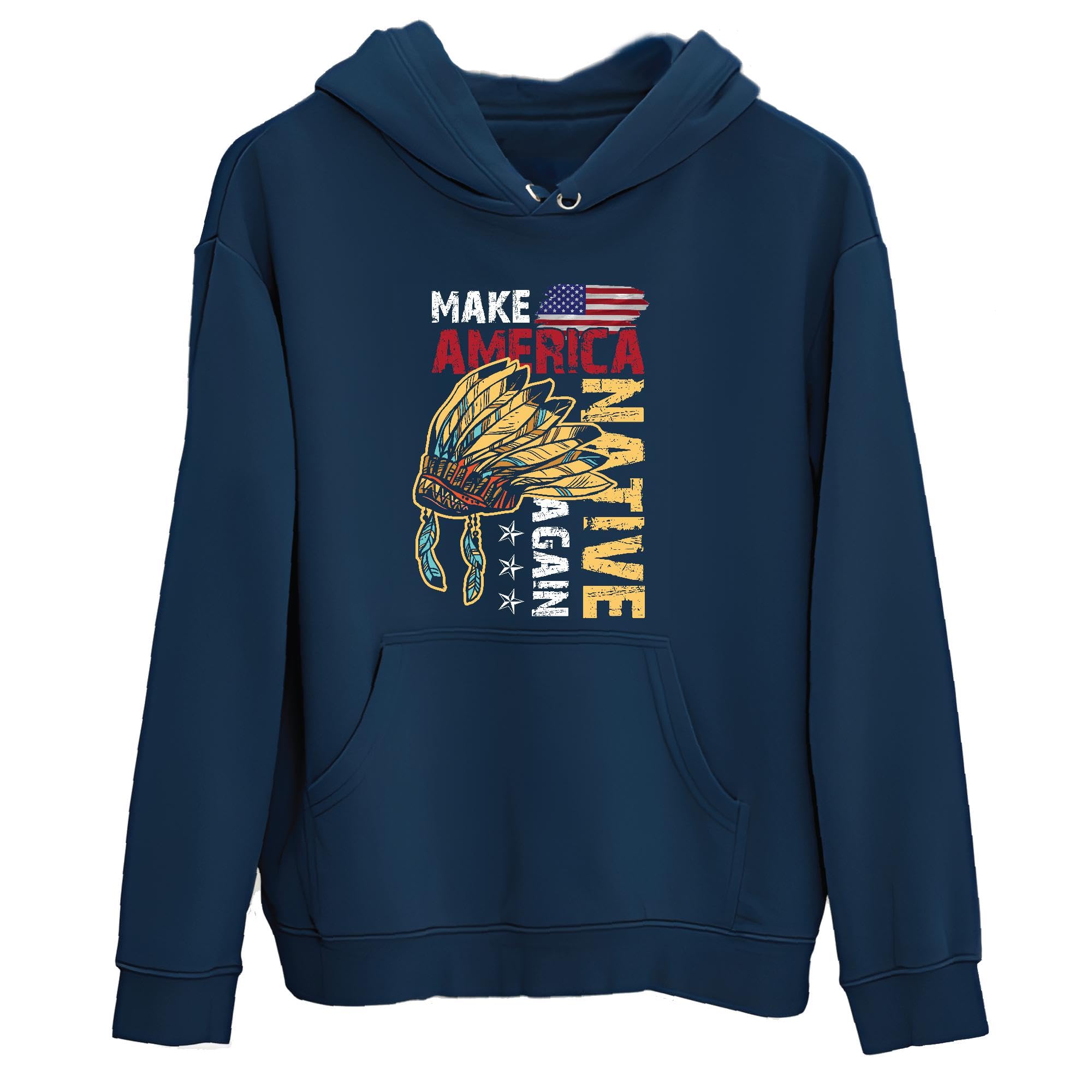 Native American Gift Idea Make America Native Again Navy and Muticolor Unisex Hoodie