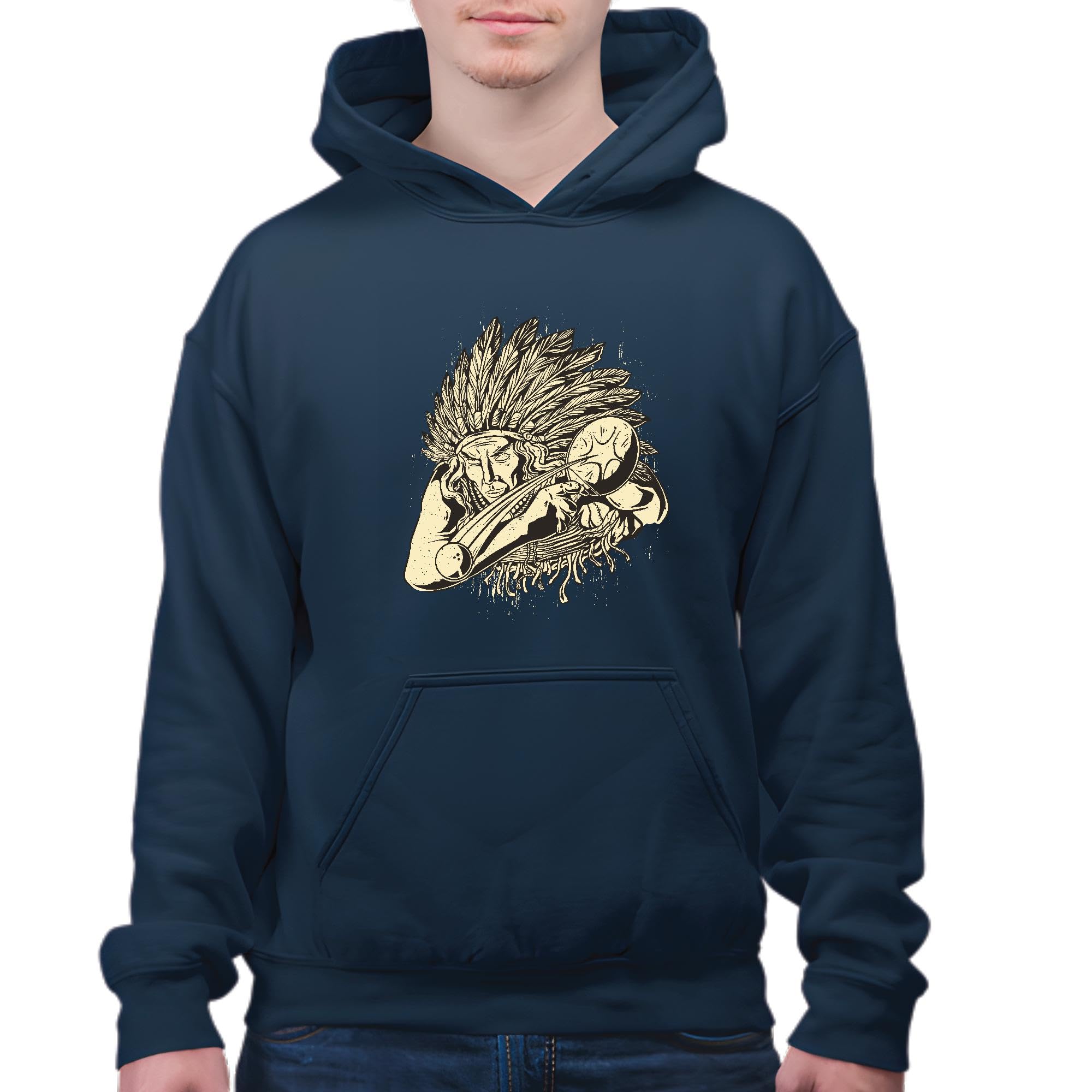 Native American Inspired Ping Pong Gift for Sports Fans for All Ages Navy and Muticolor Unisex Hoodie